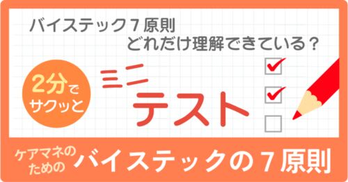 ケアマネジャーの現場で思い出してもらいたい「バイステックの7原則」をクイズにしてみました。日頃のご自身の対人援助を振り返るきっかけとして、ぜひチャレンジしてみてください。