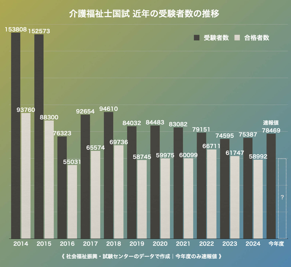 昨年度の合格率は78.3%。近年は80%を超える回があるなど、高い水準で推移している。合格発表は3月16日の午後。社会福祉振興・試験センターのホームページなどで行われる予定だ。