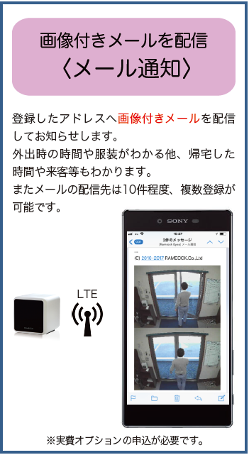 ・カメラで画像を記録でき外出時の様子や来客者を確認