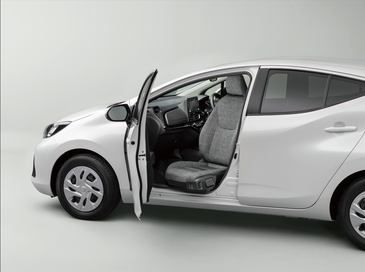 いつでもウェルキャブはトヨタのシエンタ、アクア、ヤリス、プリウスなどの対象車種に、用品のみを後付けしてご利用いただけます。対象車種であれば後付けできるので、車を買い替えることなくお客様のライフステージの変化に合わせてフレキシブルに対応でき、乗り降りの負担やご家族の負担を軽減します。